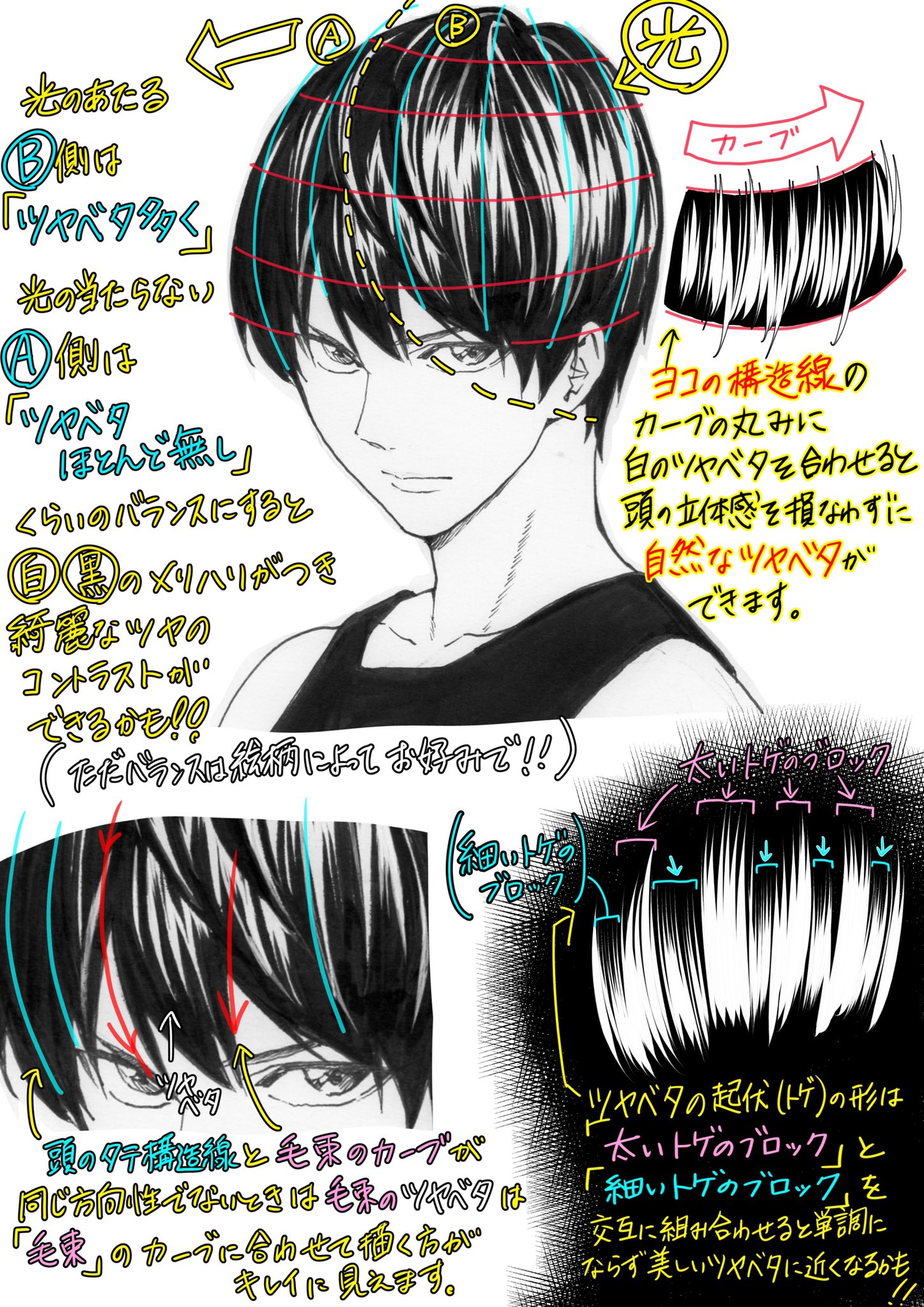 仕事でも自分の漫画でも 覚えておくと超便利 髪のツヤベタ 描き方 Oyukihan S Blog 漫 パワー充電所